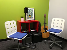 Guitar lesson in progress! Blue Guitar Lesson Room  Musicology Temecula Waiting Area